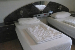 Schlafzimmer 1, mit 2 Einzelbetten (200x90 cm), 2 Nachtschränkchen, Überbau mit integriertem Radiowecke, Herrendiener und 3-teiligem Schlafzimmerschrank mit einem Tresor für Ihre Wertsachen. Herrendienern.