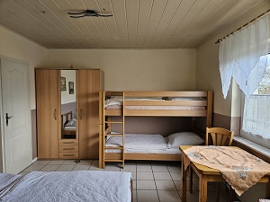 Schlafzimmer 2, mit 2 Einzelbetten (200x90 cm) und 2 weiteren Schlafplätzen in einem stabilem Etagenbett, 2 Nachtschränkchen, Kleiderschrank, Tisch, sowie Stühle zur Kleiderablage komplettieren dieses Zimmer.